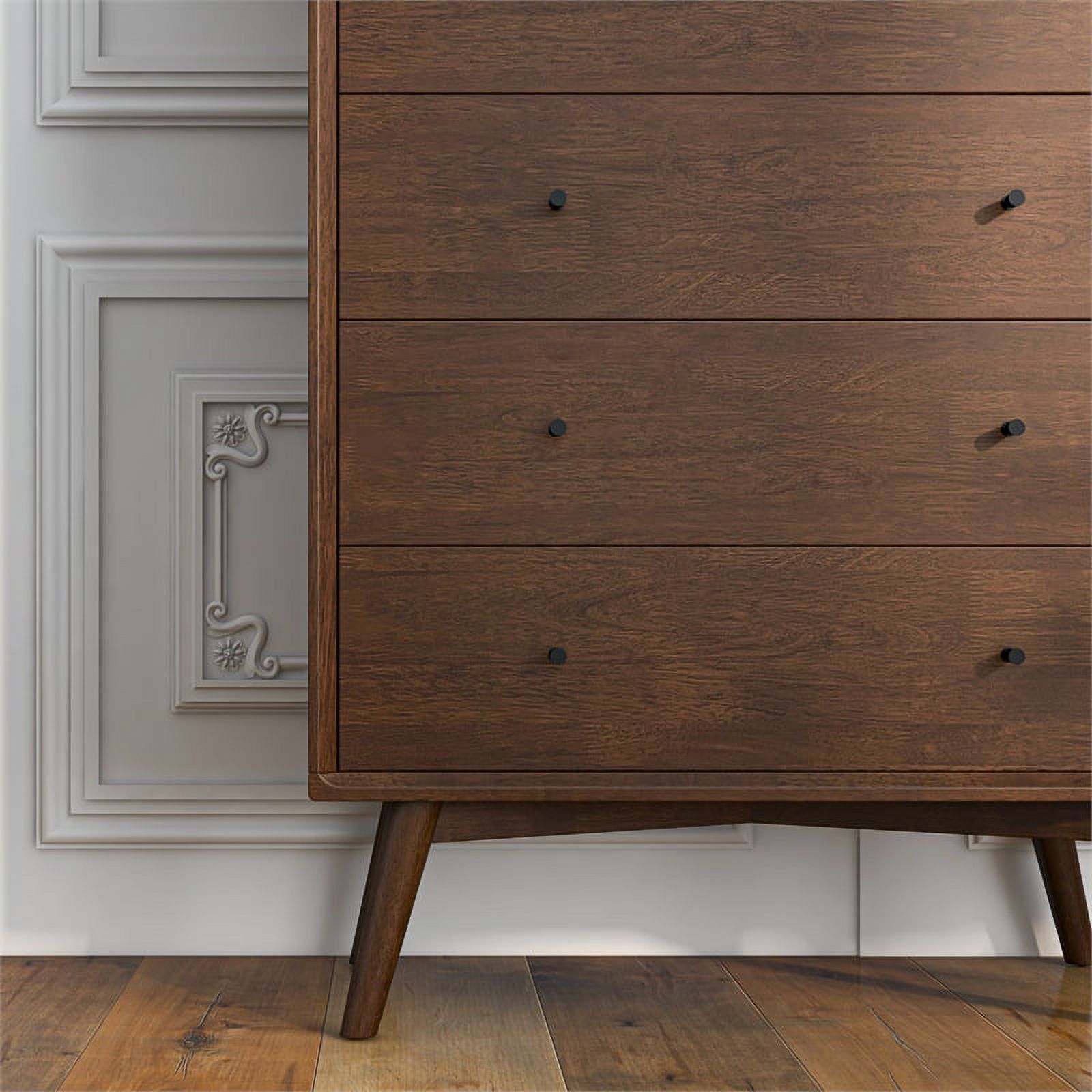Francesca Modern Bedroom 5 Drawers Tall Dressers In Solid Wood Walnut Brown Walmart Com